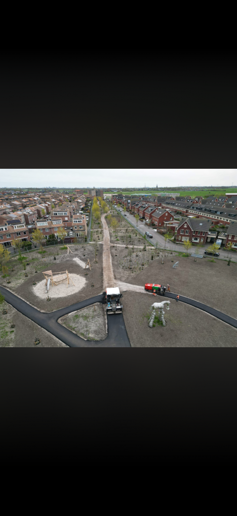 Momenteel zijn we bezig met het asfalteren van de paden van de Groene Dragers.